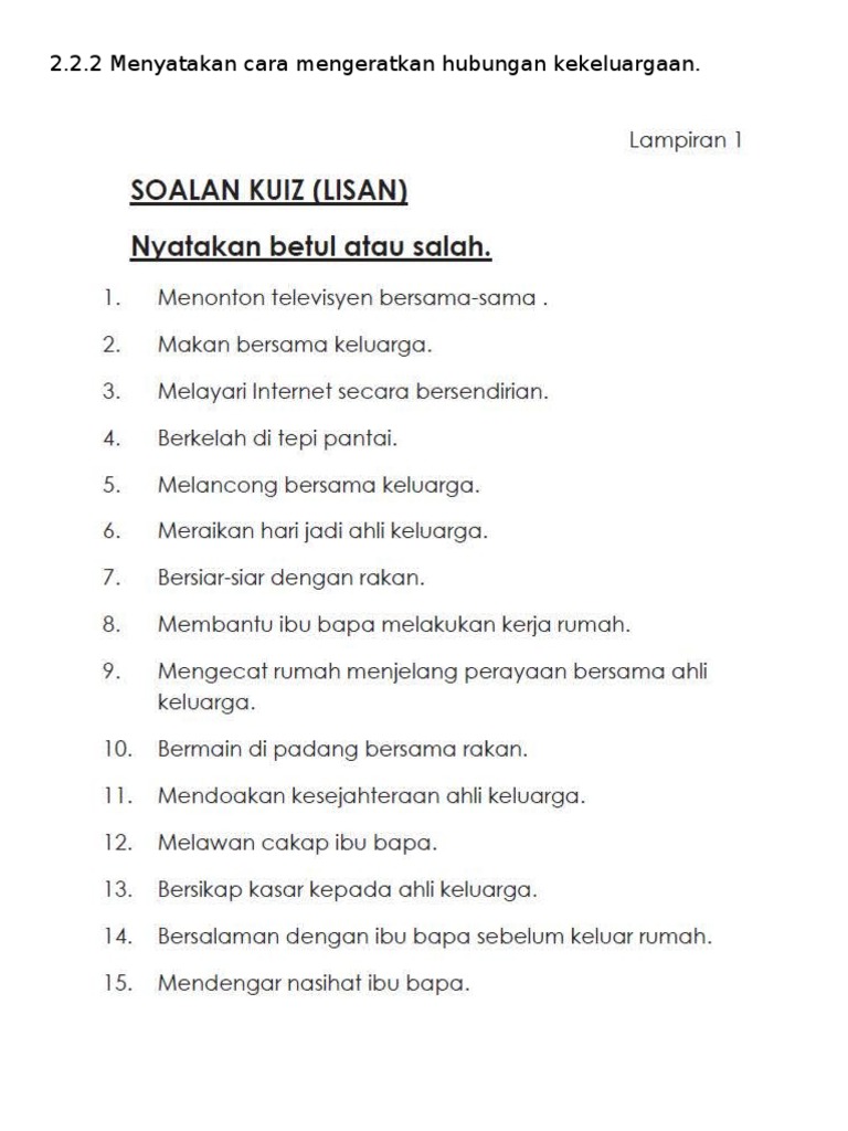 Tradisi kekeluargaan juga dapat mengeratkan hubungan silaturahim. Aktiviti kekeluargaan vital kerana dapat mewujudkan suasana yang bahagia sesama ahli keluarga dan juga mengeratkan ikatan silaturahim bak isi. Cara tahap asas untuk menulis ulasan bagi pelajar tahun 4 5 dan 6disediakan oleh.