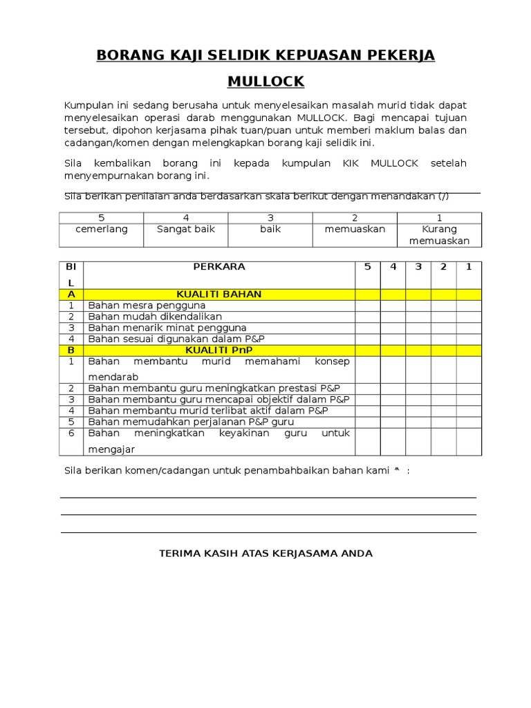 Borang Soal Selidik Kepuasan Kerja Pdf Gordoncxt