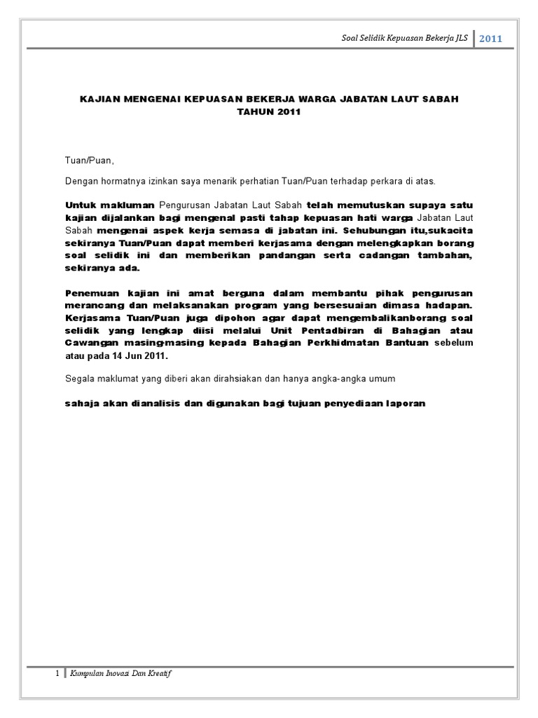 Borang Soal Selidik Kepuasan Kerja Pdf Jovanictz
